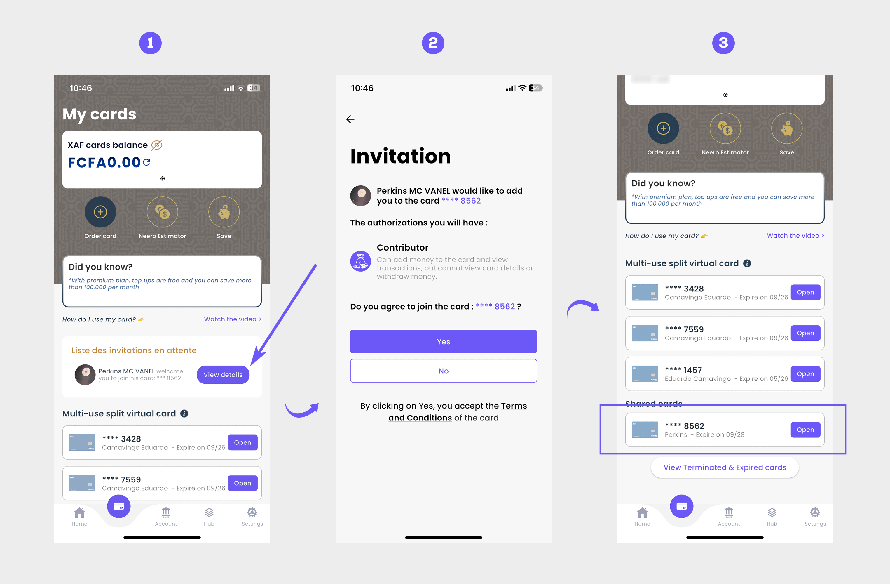 Grâce à cette nouveauté, vous pouvez désormais donner un accès contrôlé à votre carte Neero à une autre personne pour l’aider à gérer des transactions, recharger la carte ou suivre les dépenses, selon le rôle que vous lui attribuez.